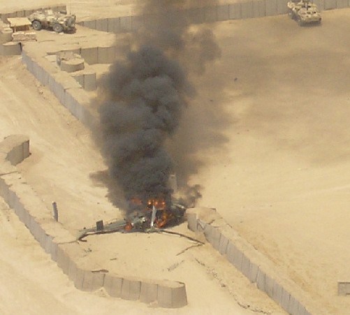 The crew was quiet except the radio filled with combat activity near WILSON. Again, the landing zone was jammed. We were able to approach into the same place where the General was dropped. There was a medevac. DUSTOFF, a Blackhawk helicopter was inbound, five minutes after us to extract casualties. This was being orchestrated while four Kiowa Warriors were rotating in and out of battle only 400 meters away. GUNSMOKE was also still high above using 30 mm cannon to augment the SHAMUS teams. The radios were blaring with activity to the point that the crew couldn’t even talk on the intercom. It was confusion and the air was congested with choppers all within a one-kilometer radius.